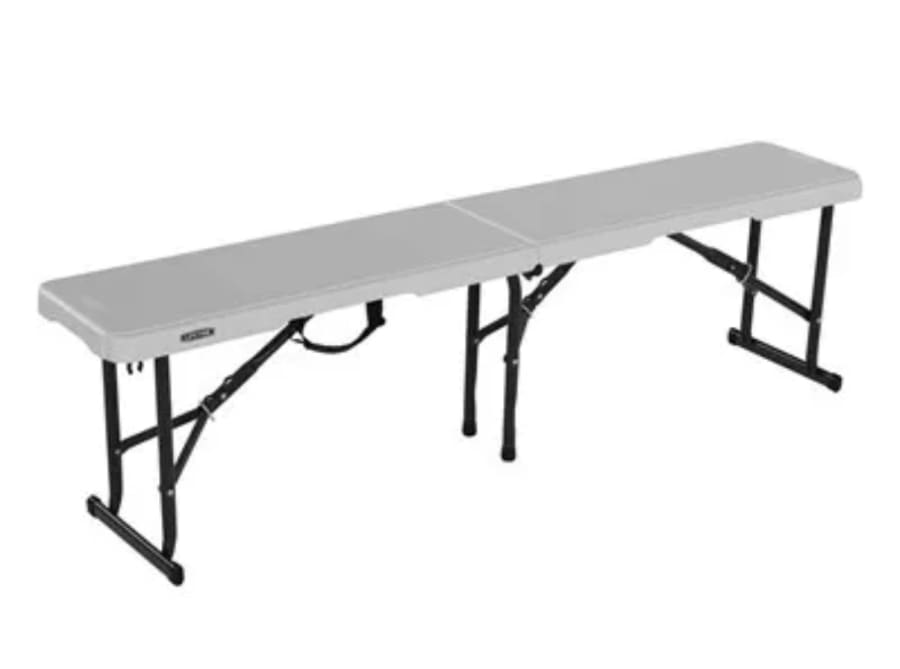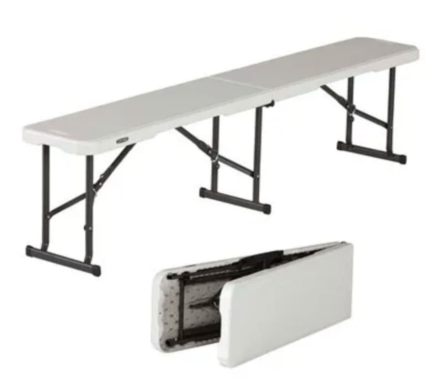 The Lifetime Fold-In-Half Bench is constructed of high-density polyethylene and powder-coated steel. Ideal for soccer games, pool-side activities, and more, Lifetime’s Fold-In-Half Bench is the perfect addition to any event.,
