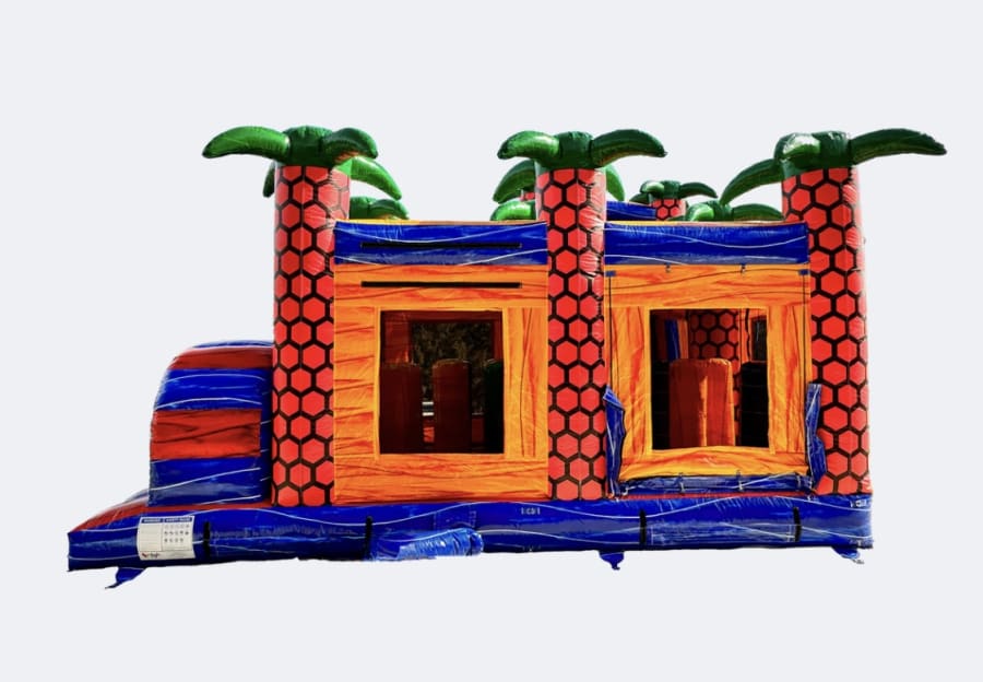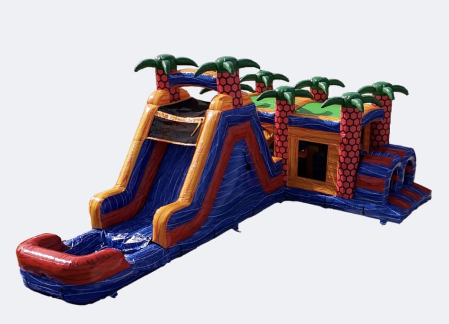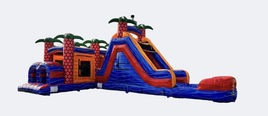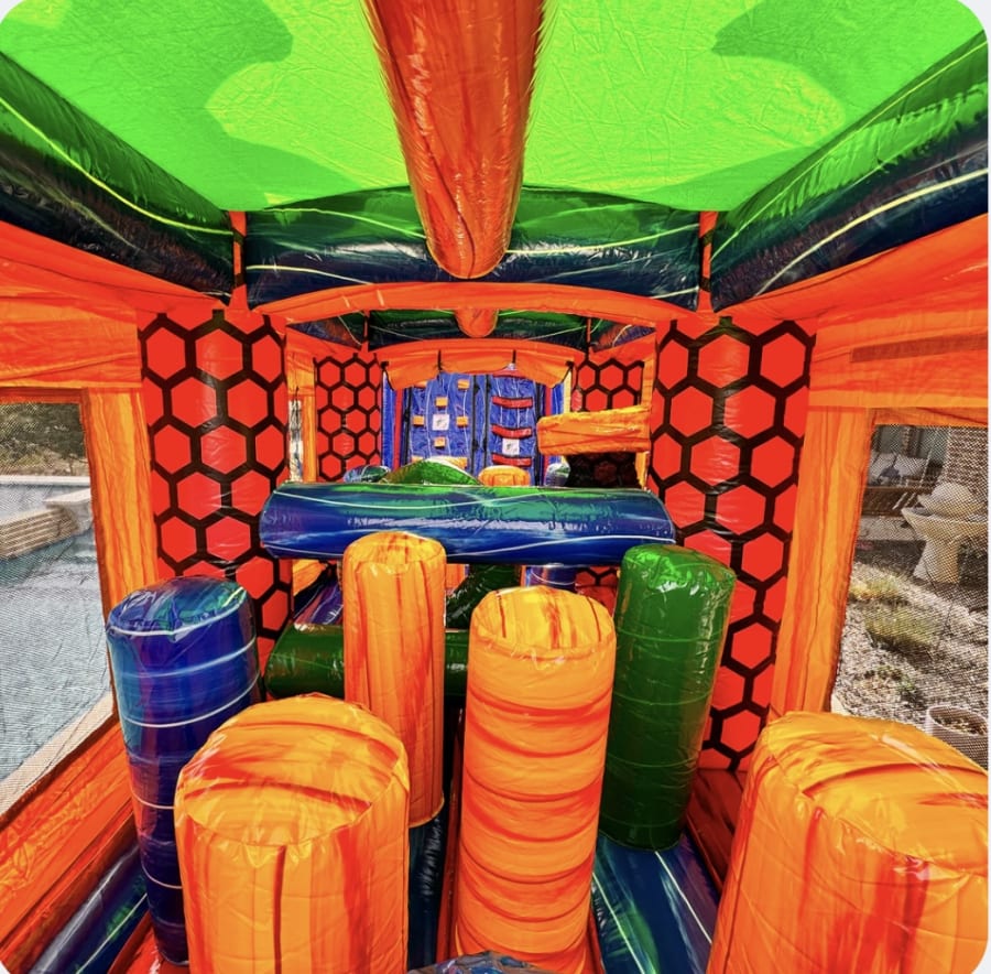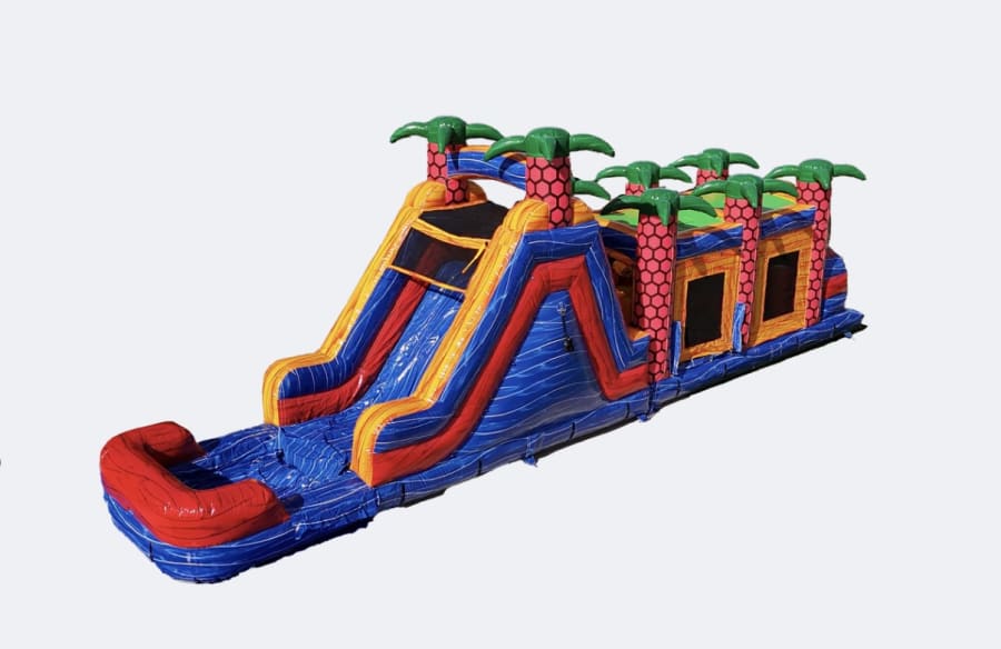 Not sure if you can fit in that backyard? The versatility of the Shape Shifter Lagoon Obstacle Course allows you to choose between multiple layouts so you can work with any setup, wet or dry! Ideal for family entertainment, outdoor play, birthday parties, and summer splashes. Prepare to unleash everyone's inner champion as they tackle this epic obstacle course that's designed to challenge and entertain. Our 48' Dual Lane Obstacle Course is packed with thrilling elements that will have participants of all ages jumping with excitement. Jump through openings, navigate pop-ups, conquer log jams, squeeze through walls, crawl through tubes, scale a rock wall, and slide to victory! This dynamic course offers an exhilarating experience from start to finish.