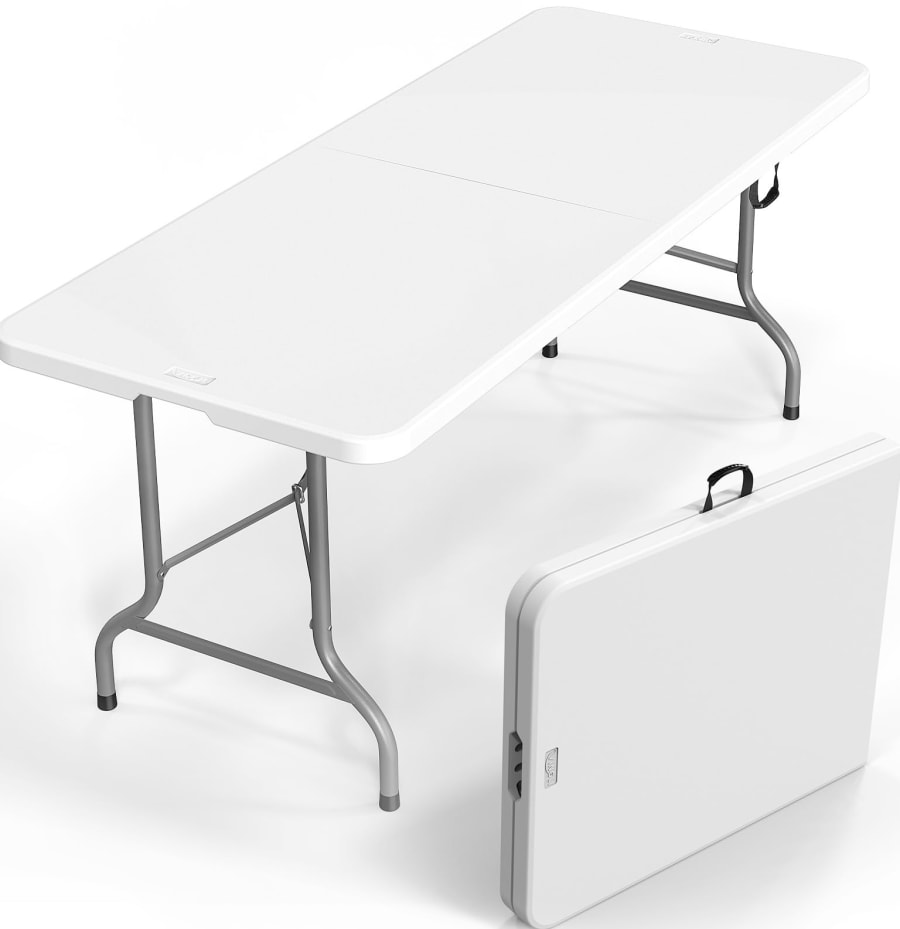 Introducting Lifetime's new line of Premium Black & Silver Office Furniture. Our 6-Foot Commercial Folding Tables are constructed of high-density polyethylene and are stronger, lighter and more durable than wood tables. The innovative nesting design allows tables to fit snuggly together, and helps keep stacked tables straight and sturdy. Our tables are UV-protected with all-weather construction for both indoor and outdoor use. The patented steel frame design provides a sturdy foundation and is protected with a powder-coated, weather-resistant finish.